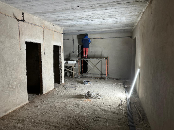 Қазіргі уақытта құрылыс жұмыстарының алғашқы кезеңі аяқталды. Фундаменттік жұмыстар аяқталып, ғимараттың екінші және үшінші қабаттарының сыртқы қабырғаларын тұрғызу, ішкі бөлмелерді орнату, бірінші қабатқа терезелерді орнату және жабын плиталарын қою жұмыстары жүргізілуде. Сонымен қатар жертөле мен бірінші қабаттың ішкі әрлеу жұмыстары да басталды. Қазіргі уақытта құрылыс жұмыстарының жалпы дайындық деңгейі 22%-ды құрайды.