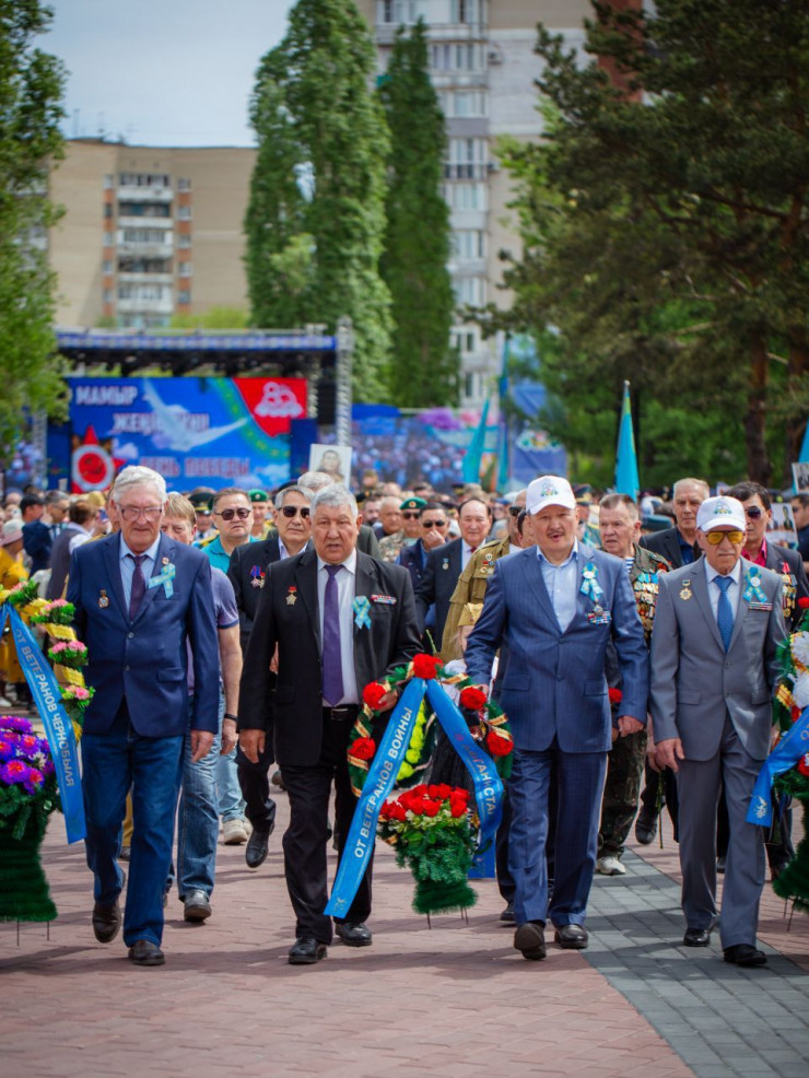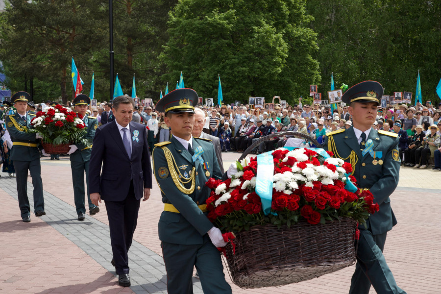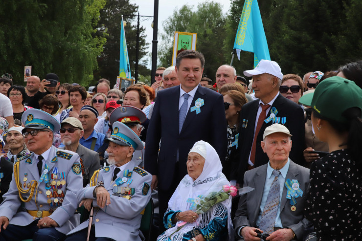 "Бүгін біз бостандығымыз бен бейбіт өміріміз үшін жанын қиған боздақтардың жарқын рухының алдында басымызды иеміз. Олардың ерлігі – Отанға деген сүйіспеншіліктің және жанқиярлықтың мәңгілік үлгісі. Біз әрбір ардагерге, әрбір тыл еңбеккеріне Жеңіске қосқан өлшеусіз үлесі үшін алғысымызды білдіреміз. Сіздердің арқаларыңызда біз бейбіт аспан астында өмір сүріп, жас ұрпақты патриоттық рухта тәрбиелеп келеміз", – деді облыс әкімі Нұрымбет Сақтағанов.