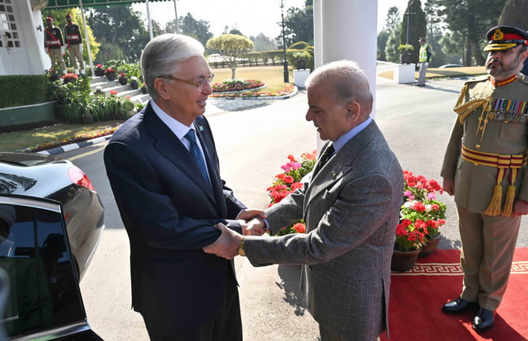 Мемлекет басшысын Пәкістан премьер-министрі Шахбаз Шариф күтіп алды. Екі ел басшылары бірге суретке түскен соң Қазақстан мен Пәкістанның мемлекеттік әнұрандары орындалды.