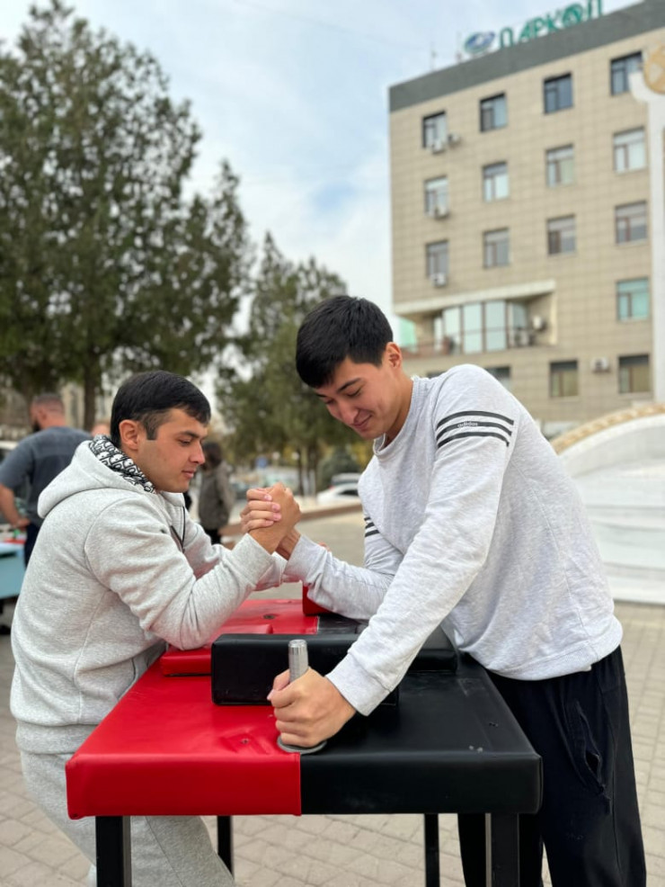 Сондай-ақ Ассамблея ғимаратының алаңында спорттық жарыстар ұйымдастырылып, армрестлингтен үздіктер анықталды. Қатысушылар салауатты өмір салтын насихаттап, мерекенің рухын биіктете түсті.
