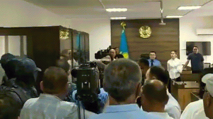 Судья үкімді оқып, залдан шыққаннан кейін жиналғандар шу шығарып, кабинадағы сотталғандар жұдырықпен әйнекті ұра бастады. Осыдан кейін айқай үдей түсті.