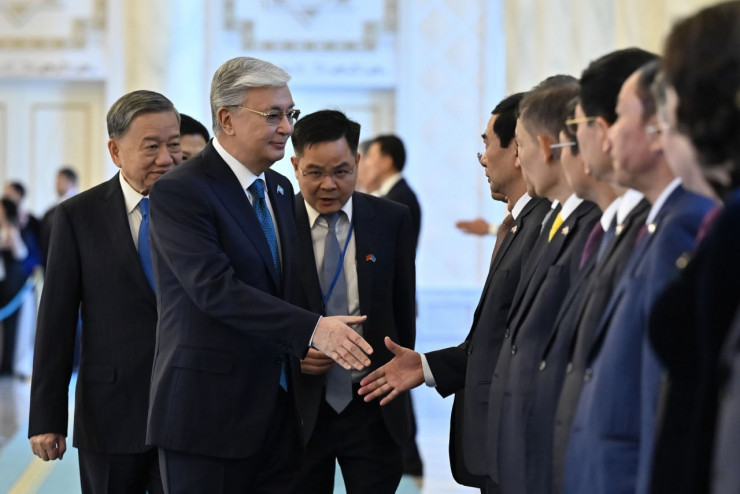 Қасым-Жомарт Тоқаев пен То Лам бір-біріне делегация мүшелерін таныстырды.