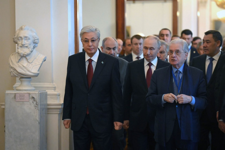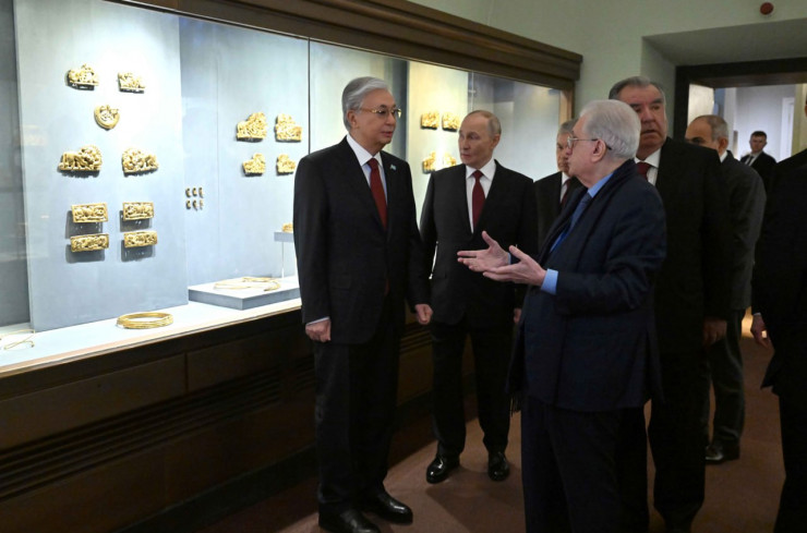 "Президент Қасым-Жомарт Тоқаев ТМД-ның бейресми саммитіне қатысу үшін Санкт-Петербургке келген өзге де мемлекеттер басшыларымен бірге Эрмитажды аралап көрді", - делінген хабарламада.