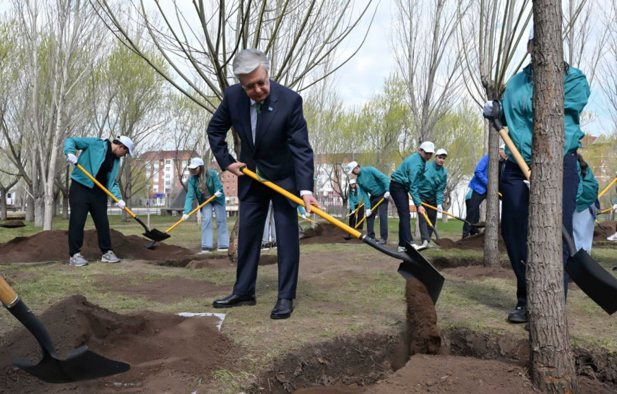 Президент Қасым-Жомарт Тоқаев "Таза Қазақстан" экологиялық фестивалі аясында Астана қаласындағы "Жастар" саябағында экобелсенділермен бірге ағаш екті.