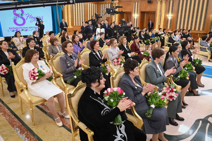 "Бұл мейрам - мейірім мен жылулықтың, даналық пен сұлулықтың нышаны. Әйел - тіршіліктің тірегі, берекенің бастауы. Бұл - ақиқат. "Бесікті де, әлемді де тербеткен" әйелдің жүрегі - ізгіліктің мекені. Сондықтан әйелдің қадірі елдің қадірі деп айтсақ артық болмайды. Бүгін мен Ақорда төрінде сіздерге және Қазақстан әйелдеріне зор ризашылығымды және алғысымды айтамын. Халқымыз қай заманда да анасын ардақтаған, қарындасына қорған болған, қыздарын сыйлап, төрінен орын берген. Жұртымыз ең киелі құндылықтарға "Ана" сөзін қосып, "Отан Ана", "Жер Ана", "Ана тілі" деп көне заманнан бері айтып келеді. Бабаларымыз "Атадан өсиет, анадан қасиет" деген. Осы мағынасы терең дәстүр қазіргі құбылмалы, күрделі заманда міндетті түрде өз жалғасын табуы керек. Бұл мақсатты орындау - ұрпақтар алдындағы парызымыз. Өйткені ұлтымыздың болмысы, тілі мен ділі, салт-дәстүрі ұрпаққа ананың аялы алақанымен, тағылымды тәрбиесімен дариды", - деді Қасым-Жомарт Тоқаев.