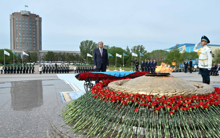 Мемлекет басшысы Ұлы Жеңістің 80 жылдығына орай елордадағы "Отан Ана" монументіне гүл шоғын қойып, қазақстандық майдангерлердің рухына тағзым етті.