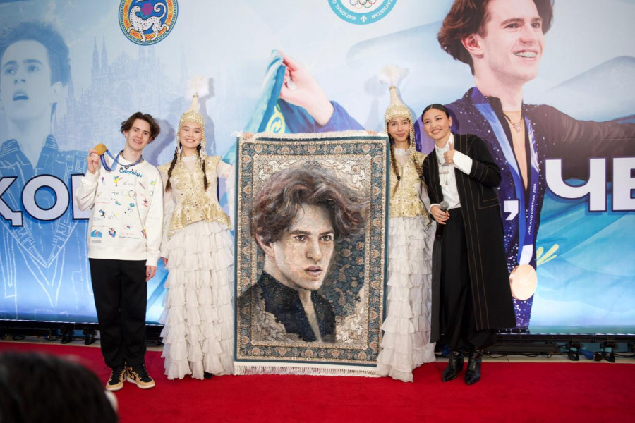 Қазақстандық суретші Әсел Сабыржанқызы ХХV қысқы Олимпиада ойындарының чемпионына оның бейнесі салынған кілем сыйлады.
