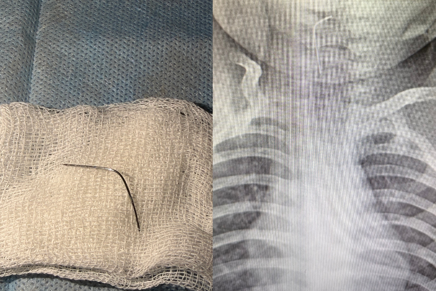 "Сәби абайсызда ине жұтып қойған. Дәрігерлер дереу рентгенологиялық тексеріс жүргізіп, бөгде заттың нақты орналасқан орнын анықтады. Түркістан облыстық балалар ауруханасының мамандары - хирург Мұхағали Темірбеков пен эндоскопист Бабыр Ырысқұлов өңеште тұрып қалған инені алды", - деп жазылған хабарламада.