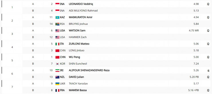 Соңғы болып әлем және Олимпиада рекордын америкалық Сэм Уотсон жаңартты. Ол биіктікке 4,75 секундта өрмелеп шықты.