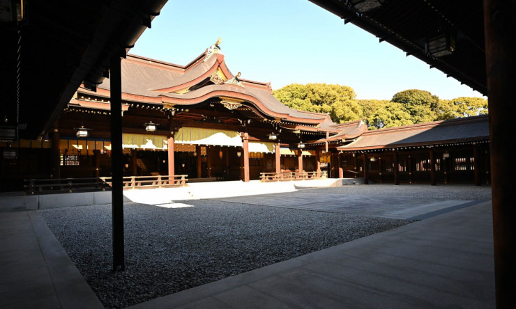 1920 жылы салынған кешен императорлық киелі орын саналады. Оның аумағында 120 мыңға жуық ағаш пен жасыл желегі бар саябақ орналасқан. Ғибадатхана түбегейлі саяси және әлеуметтік-экономикалық реформалар жүргізу арқылы Жапонияны әлемнің дамыған елдерінің біріне айналдырған император Мейджиге арналған.