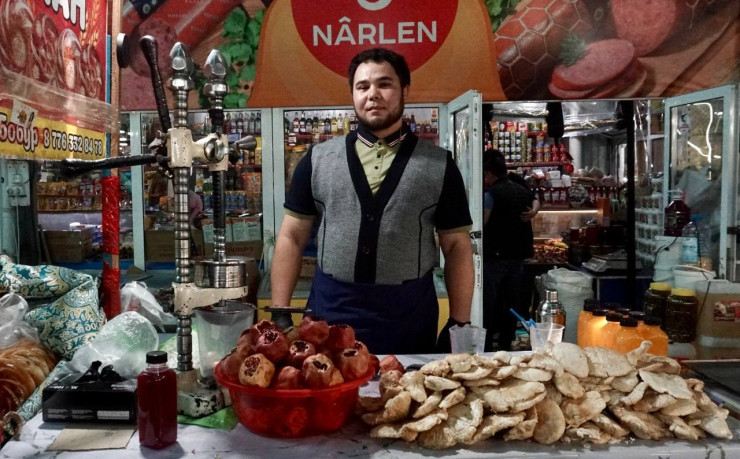"Қазір сауда баяу, барлығының бағасы өскен. Бәрі қымбаттады. Мен маусыммен жұмыс істеймін, тек қыркүйектен сәуірге дейін, анар болған кезде ғана шығамын. Маусым аяқталып қалды, соңғы күндер жұмыс істеп жатырмын. Сауда жақсы жүрсе, күніне 15-20 мың табамын. Мен мұнда жұмысшымын, бұл менің саудам емес. Өзімдікі болса, күніне 50-70 мың теңге табуға болар еді. Қала шетінде тұрамын, күн сайын жұмысқа келемін, Шымкенттен 30 шақырым жерде тұрамын. Шымкент - Қазақстандағы ең тамаша қала. Осында дүниеге келдім, өмір бойы осында тұрдым. Мұндағы адамдардың түсінігі мол, көпшіл", - деді ол.