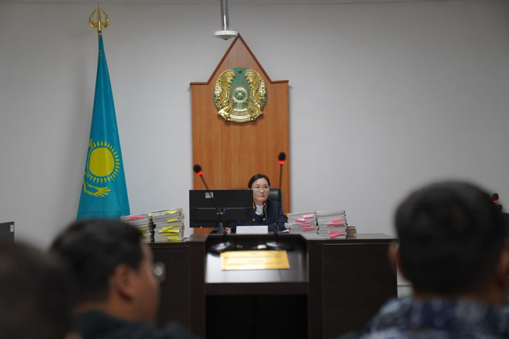Істі судья Айнагүл Түкібаева қарап жатыр. Айыпталушылар орындығында Хасан Қасымбаевтан бөлек тағы бес адам бар. Процесс мемлекеттік тілде ашық түрде өтіп жатыр.
