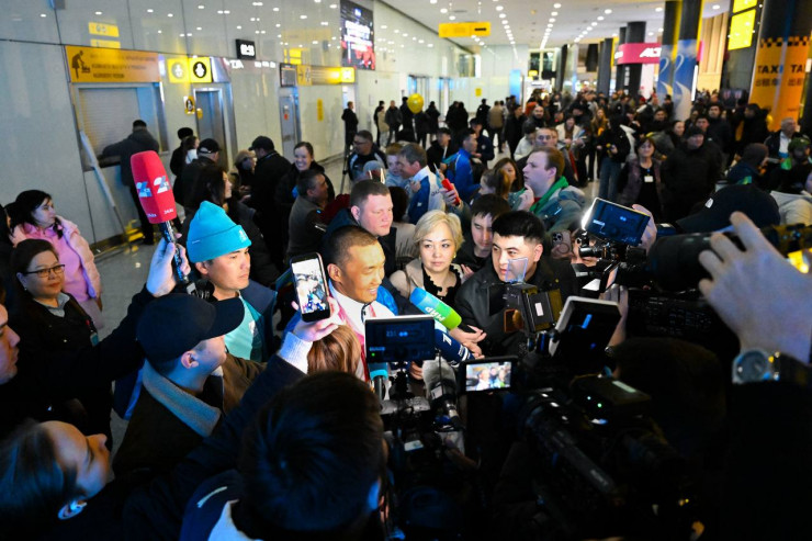 Спортшыны жанкүйерлері, туған-туыстары және спорт саласының өкілдері күтіп алды.