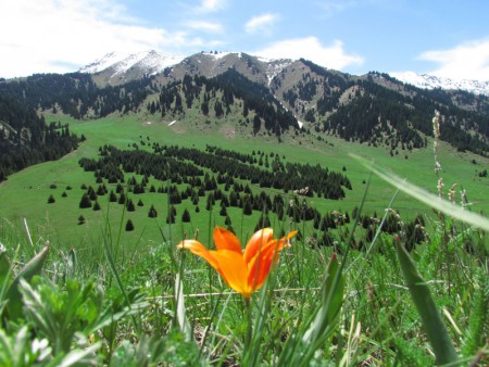 Жауқазындармен жайнап тұратын, баратын бастап жол шеті.