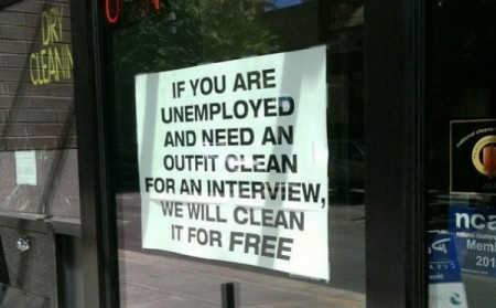 Киім тазалау қызметі жұмысқа тұру үшін әңгімелесуге бара жатқан адамның киімін ақы-пұлсыз тазалап береді.