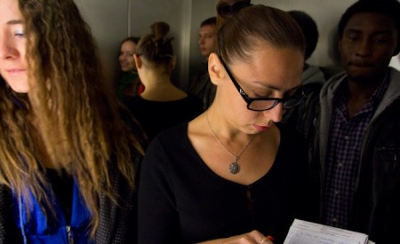 Он бес адам шығатын лифтке он алты адам шыққандықтан лифт қалыпты жұмыс жасай алмайды. Сонымен сөзсіз бір адам түсіп қалуы керек. Бірақ, ондағы адамдардың бәрі де қарбалас. Бірі жұмысына, бірі әлде басқа нәрсеге асығады дегендей. Ешкімнің де түсіп қалғысы келмейді. Уақыт зымырап өтіп жатыр. Бәрі де асығыс бейнеде сағатына қарап қойып, тықыршып тұра береді. Қас-қағым сәтте лифт екі рет түсіп, қайта шығар уақыт өте шығады. Әбден шыдамы таусылған бес-алтау баспалдақпен кетуге бірдей сыртқа шығады. Ал шындығында олардың бәрі де жұмыстан кешіккен еді.