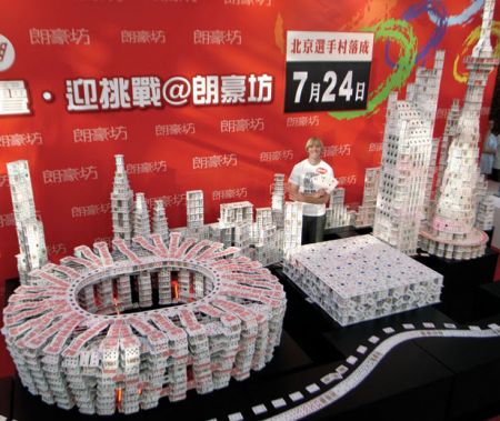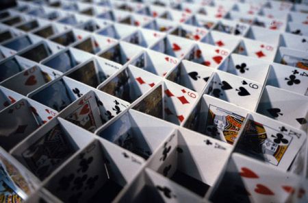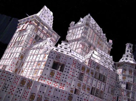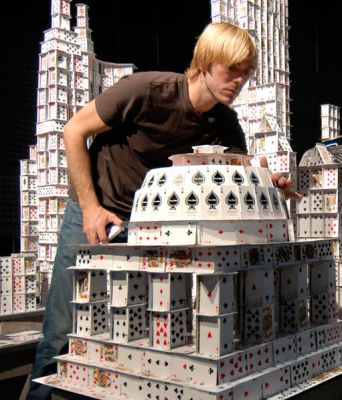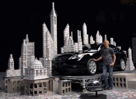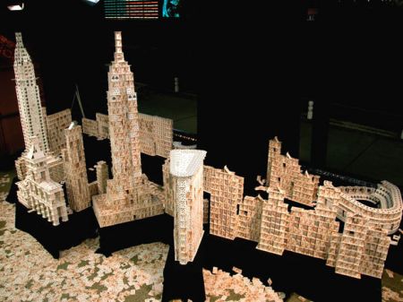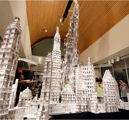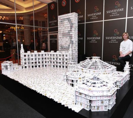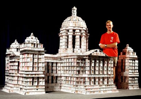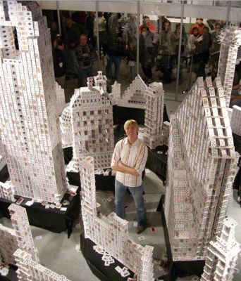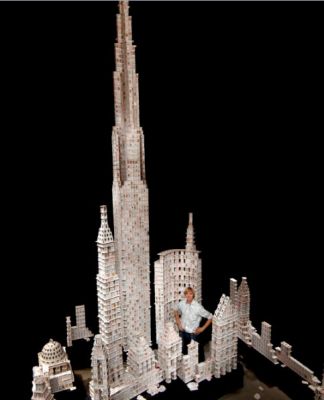 Даллас орталығындағы зеңгір үйлер. Осы бір еңбегіне Берг 1060 карта колодын жұмсаған. Сол арқылы 2007 жылы әлемдік рекорд орнатылған-ды.