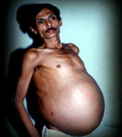 | Мына сұмдықты қараңыз! Санджу Бхагат есімді ер азамат бір қарағанда босанғалы жүрген адамға ұқсайды. Оның осыншалықты дәу іші қимылдауға, тыныстауға кедергі болған. 1999 жылы дәрігерлер оған ота жасап, ішінде егіз бауырының бар екендігін анықтаған. | ![]() |