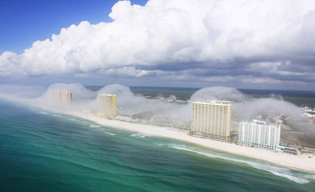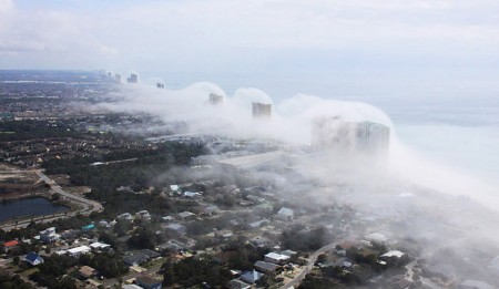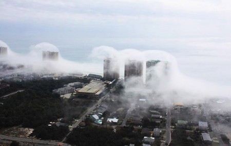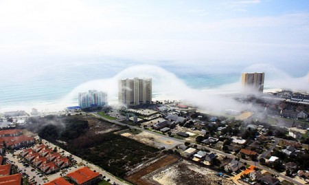 Ең алдымен, көп қабатты үйлердің шатырларында тұман үлпектері пайда бола бастайды да, екі-үш минуттан кейін бүкіл ғимаратты басып алады. Жерден қарағанда, қарапайым тұман болып көрінгендігімен, аспан әлемінен бақылаған адам нағыз цунамидың куәгері бола алады.