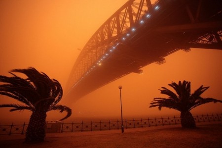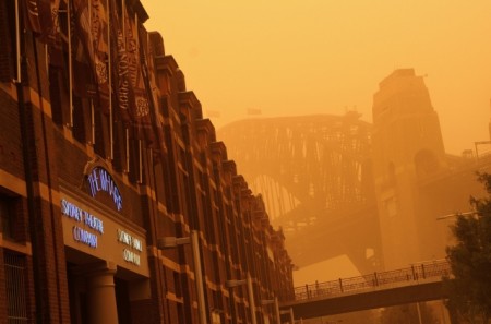 Үш жарым жыл бұрын Сидней қаласы сарғыш-қызыл құммен көмкерілген болатын. Сонда Аустралияның Марстан айырмашылығы аз еді. 2009 жылы 23 қыркүйекте түсірілген төмендегі суреттер соның айғағы. Біз сіздерге осындай ерекше құбылыс кезіндегі Сиднейдің келбетін көрсетпекпіз.