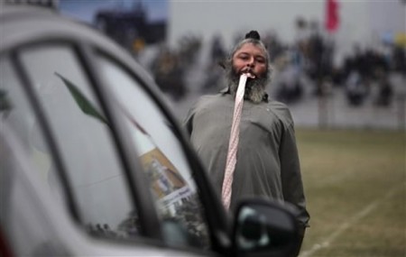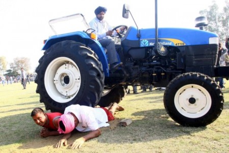 Жарыс бағдарламасында әдетте біз тамашалауға үйреніп қалған спорт түрлерінің орнына торпақ арбамен жарысу, дененің түрлі мүшелерімен, соның ішінде тіс, құлақпен автокөліктерді тарту және де ауыр заттарды ауызбен ұстап қалу, трактор астында қалу секілді жарыстарымен жиналған көпшілікті қуантады екен.