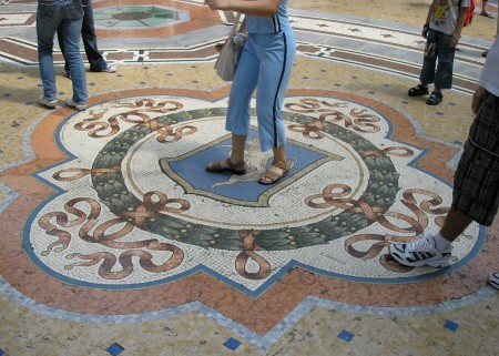 Алты қақпалы ғимарат Италиядағы Милан қаласының орталығында орналасқан. Бұл - қаладағы көне сауда орталығы. Сарайдың тура ортасында өгіздің мозайкасы бар. Жұртшылықтың айтуынша, адам өзінің табанына өгіздің қуығын қоятын болса, басына сәттілік қонады.