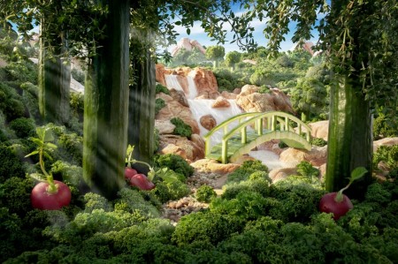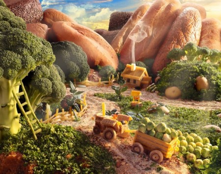 Лондон қаласында жұмыс істейтін Карл Уорнер атты аустралиялық фотограф жақында ғана «Foodscapes» атты тағам пейзаждары топтамасын ұсынды. Оның суреттеріндегі таулар - наннан, ағаштар – броккольден, толқындар – орамжапырақ жапырақтарынан, ал тастар – картоптардан жасалған.