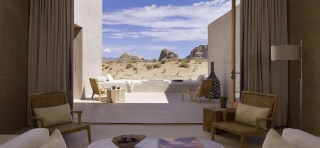 Мұның дәлелі - Юта шөліндегі Амангири қонақ үйі. Амангри сөзі «бейбіт тау» деген мағынаны білдіреді. Қонақ үйге қарап отырып, тап бір сахарада байқаусызда жоғалып қалған жақұт дерсіз. Иә, дәл солай! Жоғалып қалған! Өйткені оның жобасы о баста табиғи ортаға арнап жасалынған.