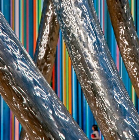 Ле Моретти бағаналары 19 түсті иемденген және оларды диаметрлері әр түрлі келеді (3 см мен 30 см аралығында). Суретші жарықтың әсерінен өзгеріске түсетін жылы және суық түстерді әдейі араластыра таңдаған. Түн мезгілінде мұнараны прожекторлар әрлендіреді.