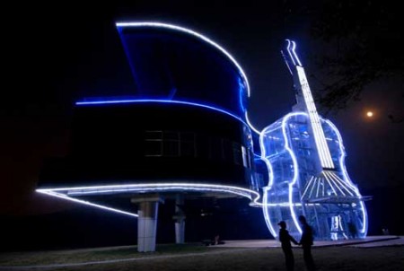 Архитектура – өз бетінше бір өнер, ал оны өнердің басқа саласымен байланыстыру – үлкен жауапкершілікті талап етеді. Ал қытайлық Хуайнань қаласындағы "Рояль мен Скрипка" үйі көптің көңілінен шығып жүр, демек жауапкершілікті ұмытпаған.