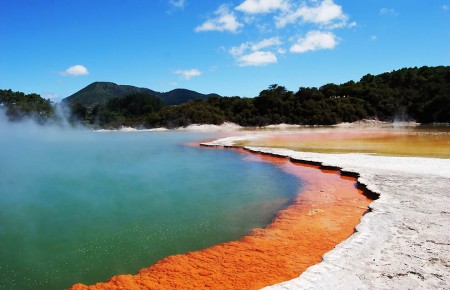 Бүгінде Жаңа Зеландияның солтүстігіндегі геотермальдық аудандағы Уаи-О-Тапу атты аралда "шампанды алап" бар. Бұл өлке көпшілікке «Шампанды бассейн» (Champagne Pool) деген атпен танымал. Бұлай деп аталуының себебі, бассейн суы көмірқышқыл газының (СО2) әсерінен шампанға ұқсап ағып жатқандығында жатыр. Шындығына келгенде бұл ешқандай шампан емес, жәй ғана термальды ыстық бұлақ.
