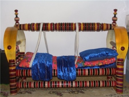 Қазақ бесігі талдан, қайыңнан иіліп, қашалып әртүрлі пішінде жасалады. Бесік жабдықтары: жөргек, жастық, бесік көрпе, төсеніш, қолбау, тізе бау, түбек, шүмек т.б.
