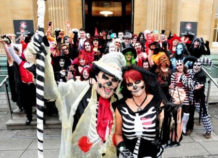 2011 жылы 29 қазанда Англиядағы бір жұп ғашық «Бас сүйек» үлгісіндегі бет-перде және адам қаңқасын бейнелейтін киімдер киіп той салтын өткізген. Тойға қатысқан құрбы-құрдастарының бәрі де осылай киініп, тойға қатысқан.