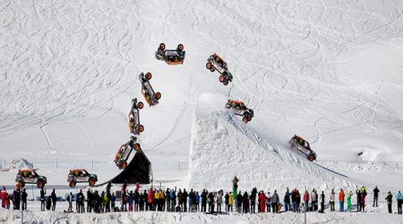 Фрирайдтан (еркін жүрісте) әлемнің төрт дүркін чемпионы әрі көлік жарысының жүргізушісі Герлен Шишери автокөлікпен ең қиын трюкті орындады. Аталған трюк «бэкфлип» деп аталады, яғни кері сальто жасау. Ол биікке қарғудан кейін жерге оңтайлы қонуға қабілетті жетілдірілген подвескасы бар MINI Countryman автокөлігінің көмегіне жүгінді. «Бұл нағыз ессіздік. Мен трамплиннен 60км/сағ. жылдамдықпен өтіп, дұрыс айналу үшін педальді соңына дейін басуым керек болатын. Және жерге қонып қойғанымды ұғыну үшін 20 секундтай уақыт қажет болды», - дейді Шишери.