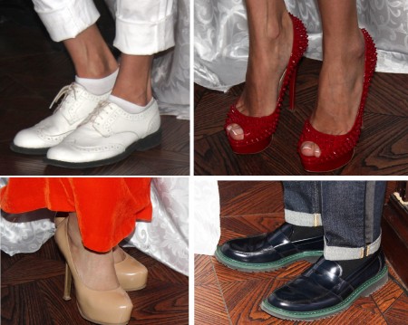 Мынандай сәнді аяқ-киімдер Салтанат Баймұхамедова, Құралай Нұрқаділовалардың аяқтарынан көрінді. Саят Досыбаев резеңкелі Prada аяқ киімін таңдады.
