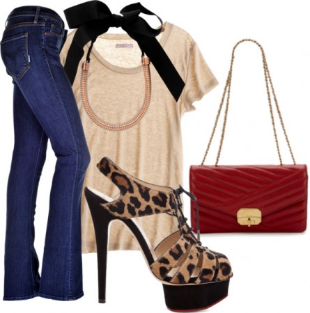 Джынсы шалбар сәннен қалсын ба? Оны нәзік кеудешемен киіңіз.