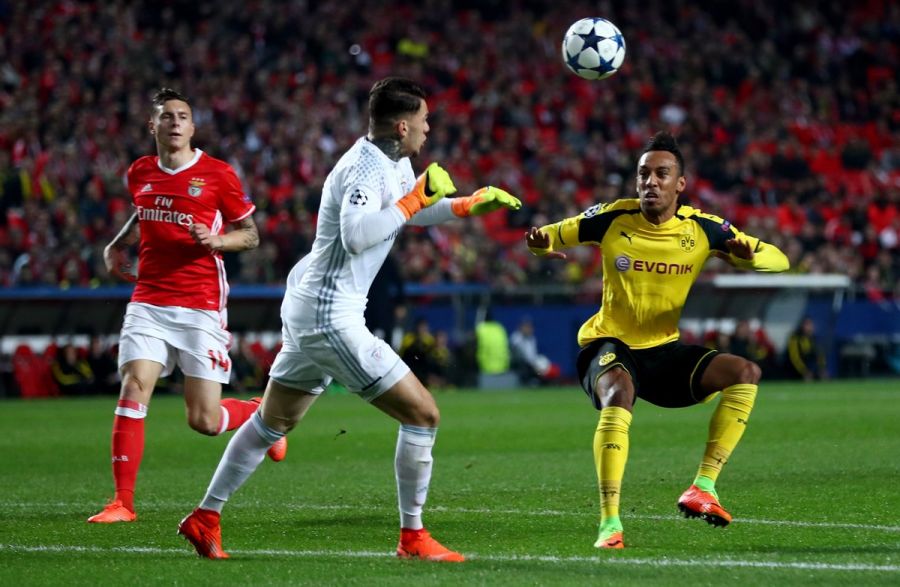 Лиссабонда өткен ойында алаң иелері 1:0 есебімен жеңіске жетті. Ойында Бенфикаға жеңіс сыйлаған голды 49 минутта Костас Митроглу соқты. 57 минутта дортмундтық клубтың таразы басын теңестіруге зор мүмкіндігі болған. Алайда пенальти тебуде Пьер-Эмерик Обамеянг қателесті. Оның тепкен добын қақпашы Эдерсон қайтара білді, Одан кейінші аралықта да Томас Тухель шәкірттері гол соғуға ұмтылғанмен, нәтиже шықпады.
