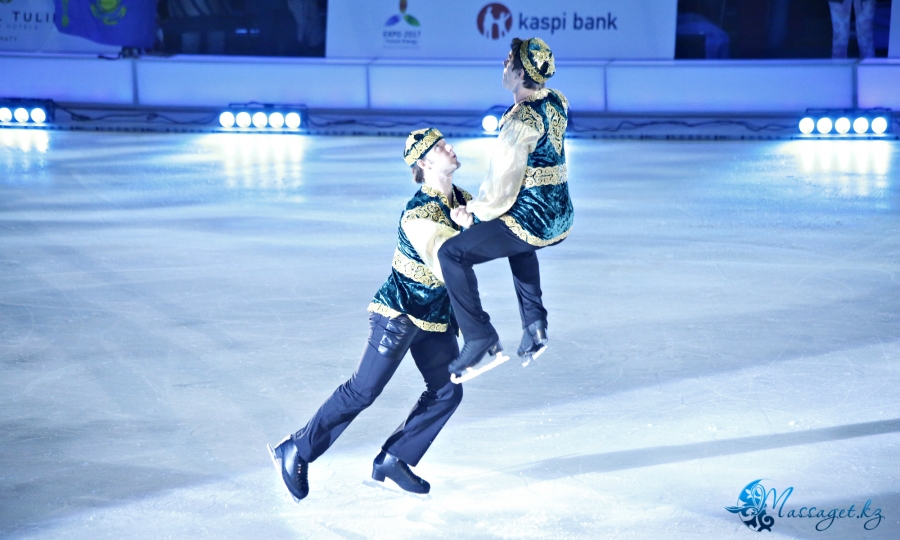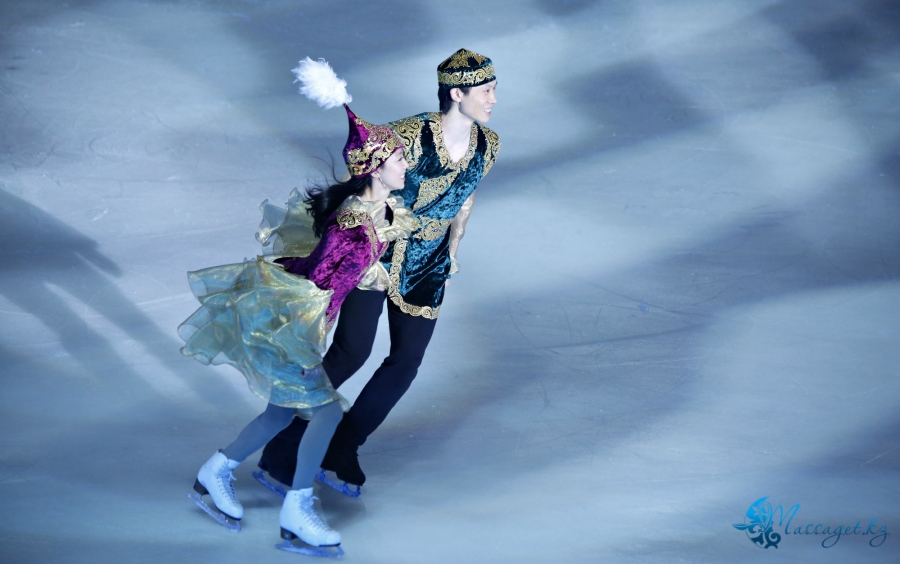 Денис Теннің мұзды шоуында мәнерлеп сырғанау спортының жұлдыздары қазақи үлгіде киінді