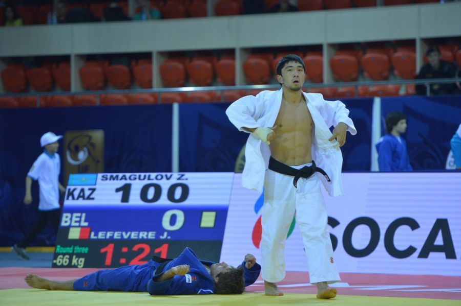 66 келідегі Жансай Смағұлов жапондық Маруями Жошариомен финалда кездесіп, есе жіберді. Жұмақанов Елдос Италия спортшысы Басиле Фабионы жеңіп, қола жүлдеге ие болды.