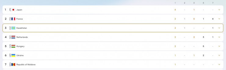 Жалпыкомандалық есепте отандастарымыз үздік үштікті түйіндеді. 4 алтын, 1 қола алған Жапония бірінші орыннан көрінді. Екінші орынды – 2 алтын, 1 күміс, 5 қола алған Франция құрамасы иеленді.