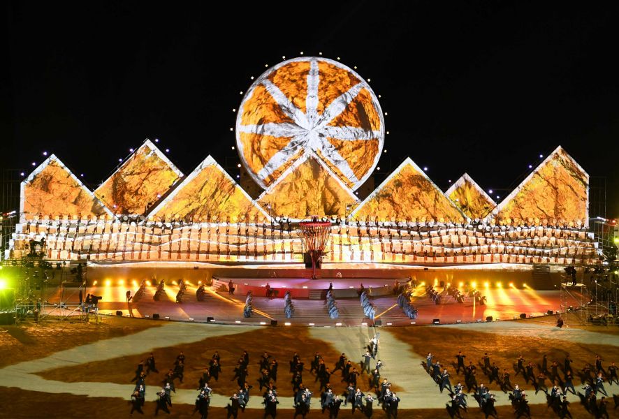 ІІІ Дүниежүзілік көшпенділер ойындарының ашылу салтанатында 3D-графикасын қолдана отырып ұсынылған театрландырылған қойылымға мыңнан астам актер, музыкант, әнші, шабандоз және спортшылар қатысты. Олар цирк өнерін, шабандоздық тәсілдерін, отты шоу көрсетіп, акробаттық жаттығулар орындады. Сондай-ақ биылғы жарысқа қатысатын елдер спорттық шеруге қатысты.