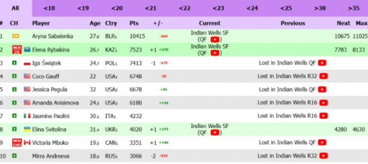 Қазақстанның бірінші ракеткасы Елена Рыбакина АҚШ-тың Индиан-Уэллс қаласында өтіп жатқан WTA 1000 сериясындағы турнирдің жартылай финалына шықты. Енді ол мансабында алғаш рет әйелдер арасындағы рейтингте екінші орынға көтеріледі, - деп хабарлайды Massaget.kz тілшісі.