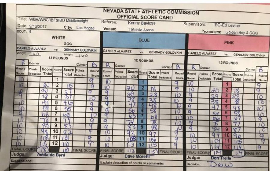 Геннадий Головкин спорттық мансабында алғаш рет қарсыласымен тең жұдырықтасты. Ал "Канело" болса 50-ші жекпе-жегінде 2-ші рет тең түсіп отыр. Бір жекпе-жегінде америкалық боксшы Флойд Мейыезерден (кішісі) жеңілген.