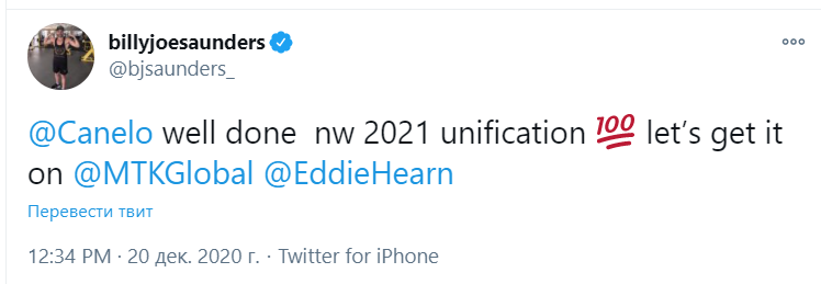 Екінші орта салмақта WBO чемпиондық белбеуіне ие британдық Билли Джо Сондерс те Сауль Альвареспен жұдырықтасуға ниетті. Ол twitter парақшасында мексикалықты жекпе-жекке шақырды.
