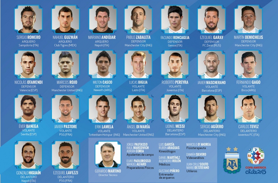 Қақпашылар: Серхио Ромеро («Сампдория»), Науэль Гусман («Тигрес»), Марьяно Андухар («Наполи»)