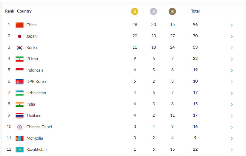 Қаізргі таңда Қазақстан құрамасы қоржынында 1 алтын 6 күміс 15 қола медаль бар. Жалпы есепте 12-орында келеді.