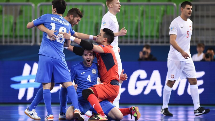 Футзалдан Словения елінің астанасы Люблянада өтіп жатқан Еуропа чемпионатында Қазақстан құрамасы топтағы бірінші ойында Польша құрамасын ұтты. 5:1 есебімен жеңіске жеткен Какау шәкірттері ширек финалға шықты.