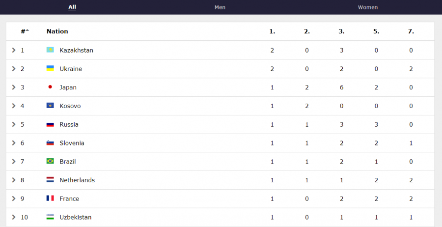 Жалпыкомандалық есепте Қазақстан құрамасынан кейін екінші орынға Украина құрамасы ие болды. Олар 2 алтын 2 қола медаль еншіледі. Ал жапондар 1 алтын 2 күміс 6 қола медальмен үштікті түйіндеді.