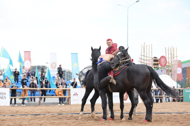 "Қазанат" ипподромы маңындағы этноауылда өтіп жатқан аударыспақтан бәсекеге 9 мемлекеттен 64 спортшы қатысуда. Ертең жарыс жолына Есімхан Рахматіллә, Сырым Ізбасаров және Біржан Қосалиев шығады.