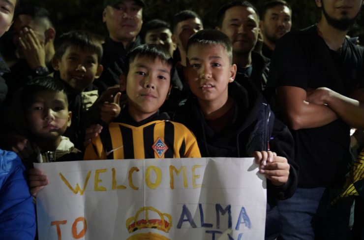 Футбол жанкүйерлері әуежайға ұшақ қонғанға дейін жиналып үлгерген. Футболшылар ұшақтан түсіп, қонақүйге беттеді. Олар бірнеше ақ автобусқа мінді.